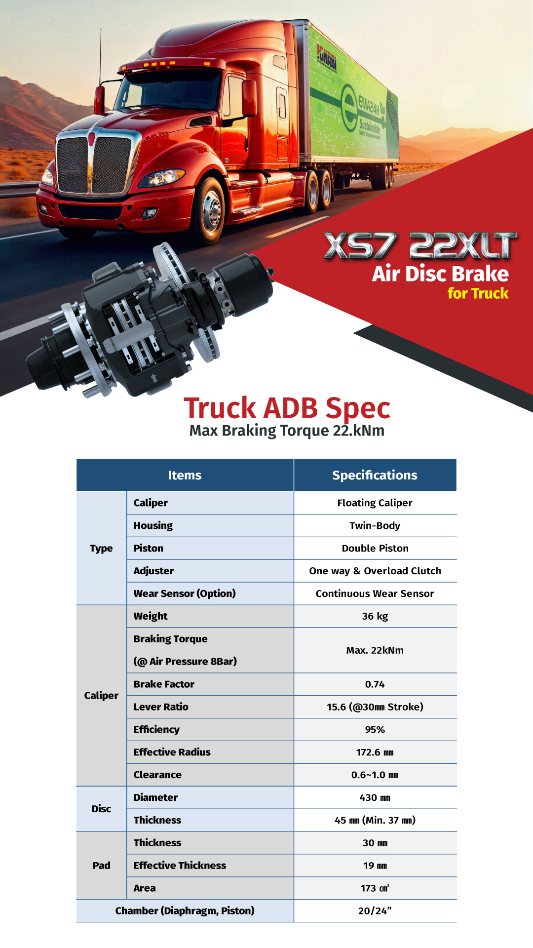 • Braking Torque (@ Air Pressure 8Bar) : Max. 22kNm