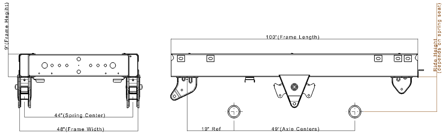 | Axle center | 49" | 49" | |